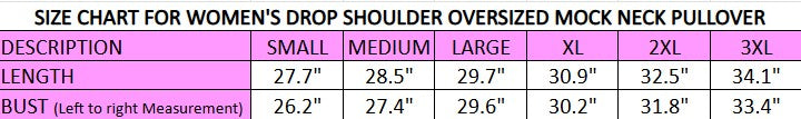 Stay comfy and cute in our oversized fit drop shoulder mock neck pullover featuring your favorite team!