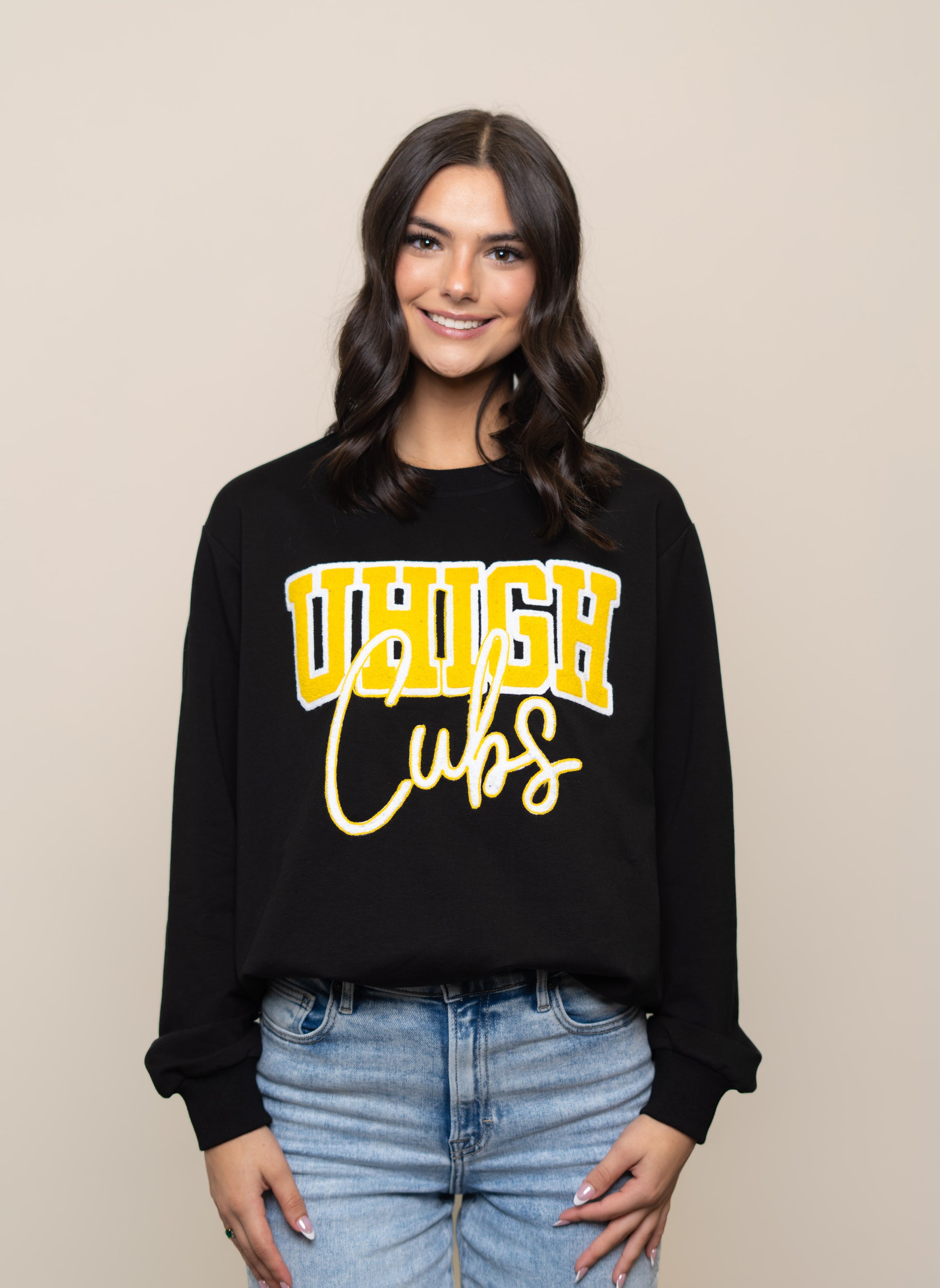 University Lab School | UHIGH | Women's Chenille Embroidery Sweatshirt (Black)