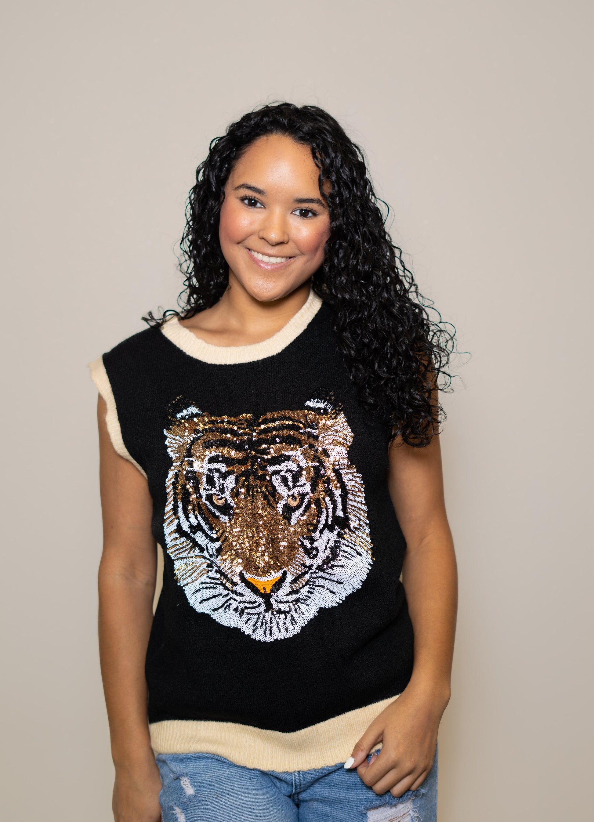 Our Geauxlden Sweater Tank features a stunning sequin embroidery tiger on our soft, sweater fabric! Another great option to cheer on the Tigers!