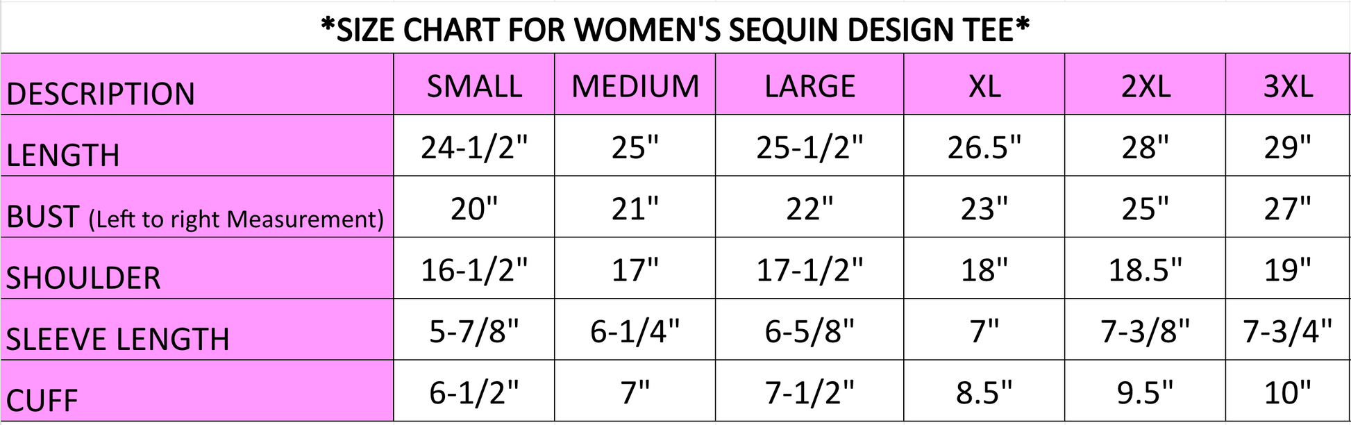 Features: Sequin Embroidery on front and sleeves. No design on back.