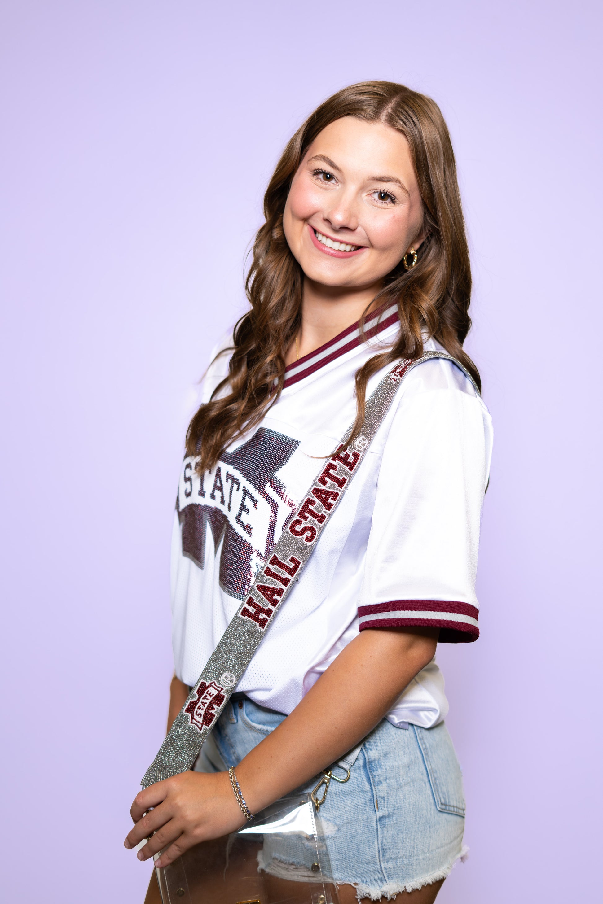 Mississippi State University HAIL STATE (LICENSED) | Custom Beaded Purse Strap (Grey)