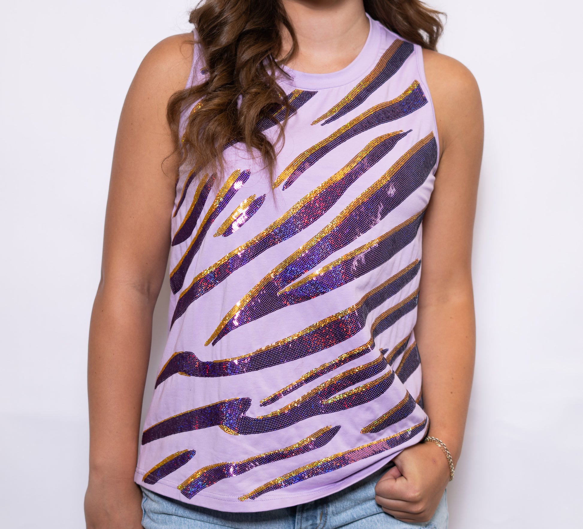Wholesale | Tiger Stripe Purple & Gold | Women's Sequin Design Tank (Lavender)