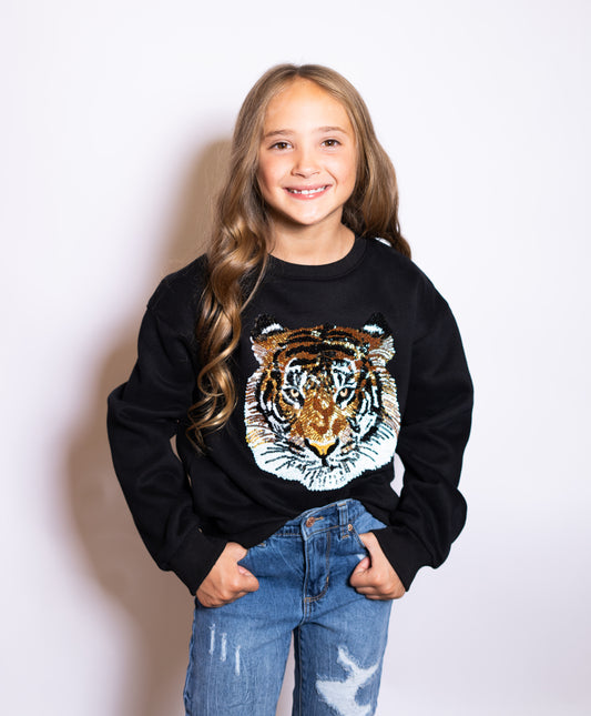 Geauxlden | Youth Sequin Tiger Sweatshirt (Black)