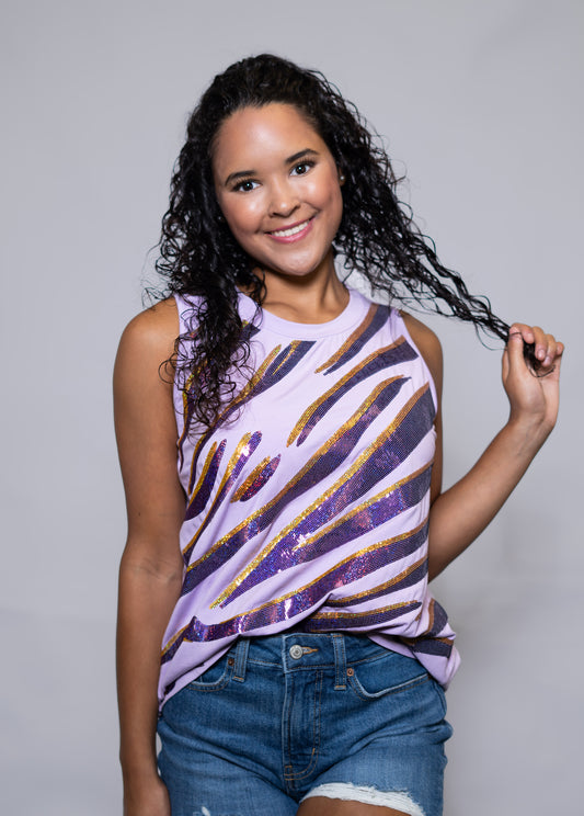 Tiger Stripe Purple & Gold | Women's Sequin Design Tank (Lavender)