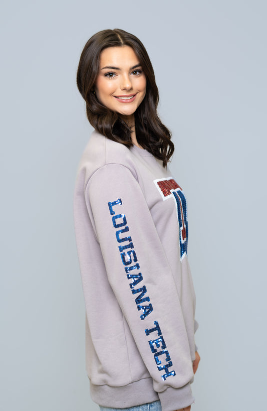 Louisiana Tech Bulldogs (LICENSED) | Women's Sequin Design Sweatshirt (Gray)