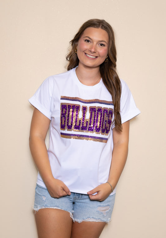 Bulldog Maroon | Women's Sequin Design Tee (White)
