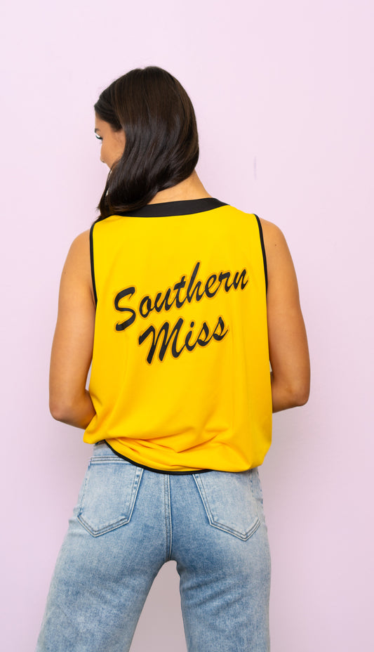 **PRE-ORDER ONLY** University of Southern Mississippi (Licensed) | 2-Tone Baseball Jersey Tank (Black and Gold)