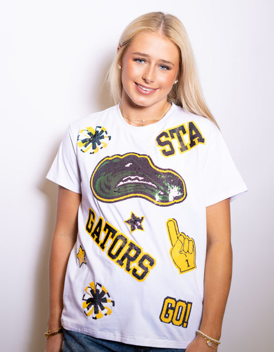 St. Amant Gators Pennant | Women's Sequin Design Tee (White)