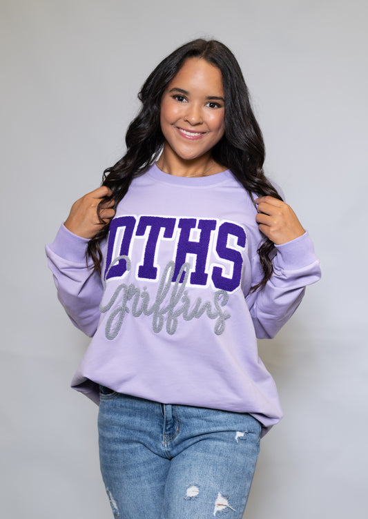 Dutchtown Griffins | Women's Chenille Embroidery Sweatshirt (Lavender)