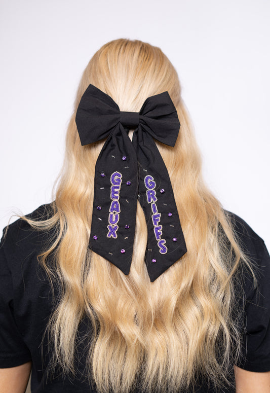 Geaux Griffs | Beaded Hair Bow (Black)