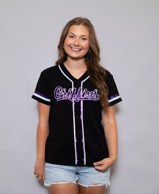 Dutchtown Griffins | Women's Sequin Design Baseball Jersey Tee (Black)