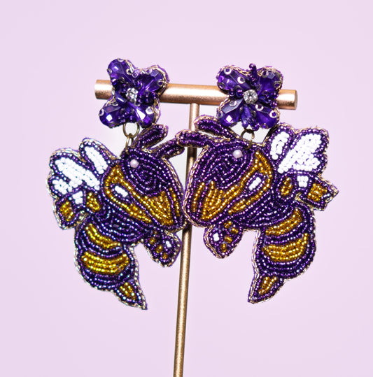 Yellow Jackets | Custom Beaded & Jeweled Earrings (Purple/Gold)