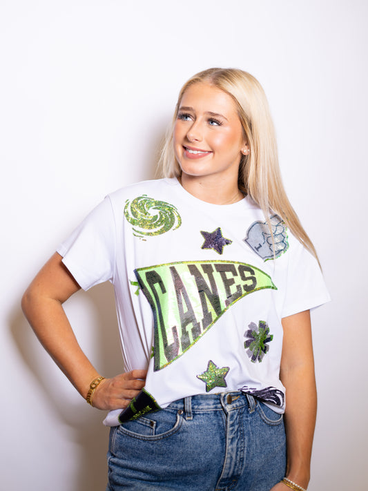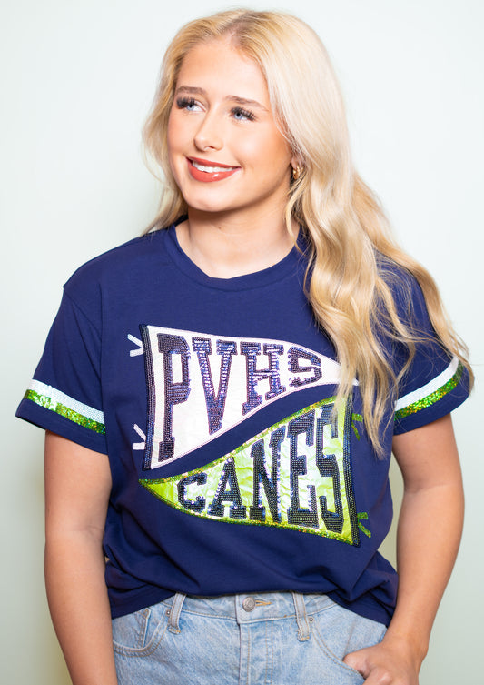 PVHS Canes Pennant | Women's Sequin Design Tee (Navy)