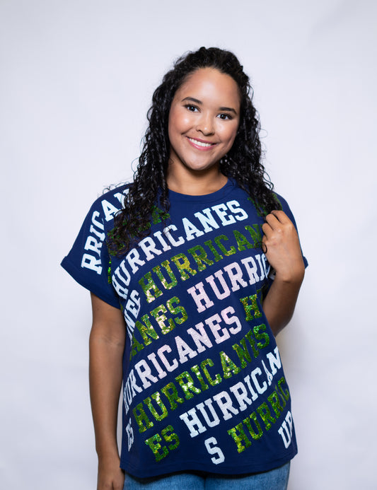 Hurricanes Varsity Block | Women's Cuff Sleeve Tee (Navy)