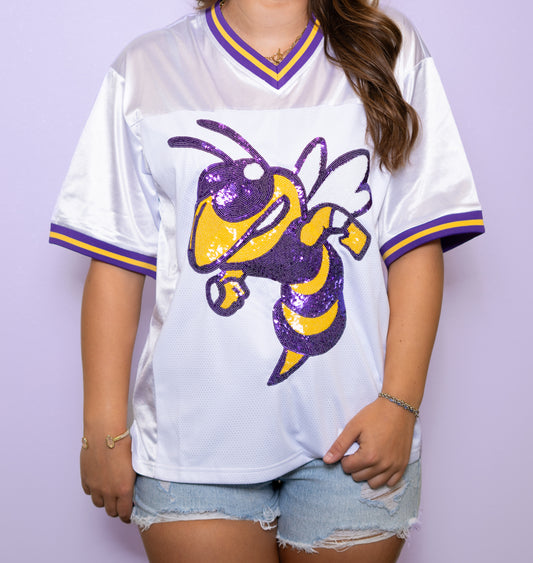 Yellow Jackets | Custom Beaded & Jeweled Earrings (Purple/Gold)