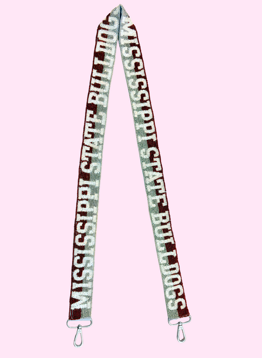 Mississippi State Bulldogs Two-Tone (LICENSED) | Custom Beaded Purse Strap (Grey/Maroon)