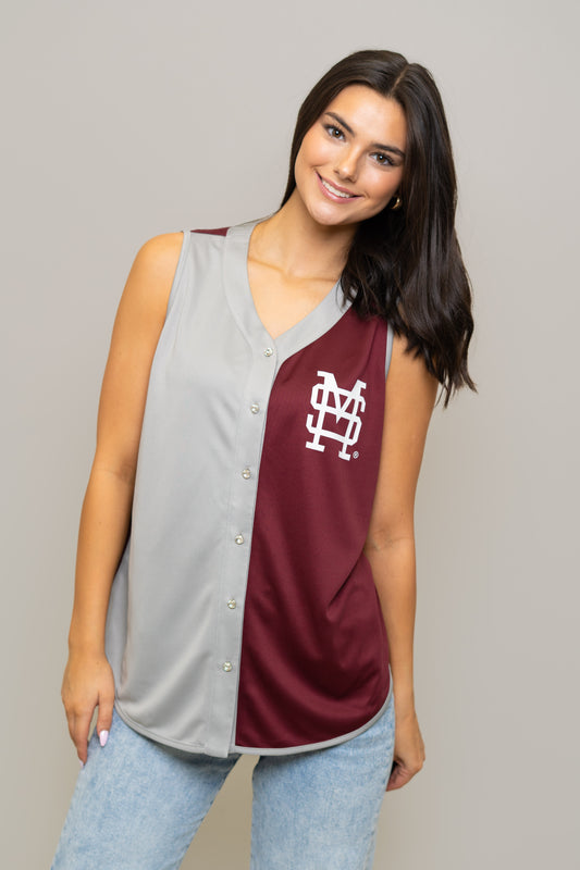 **PRE-ORDER ONLY** Mississippi State (Licensed) | 2-Tone Baseball Jersey Tank (Grey / Maroon)
