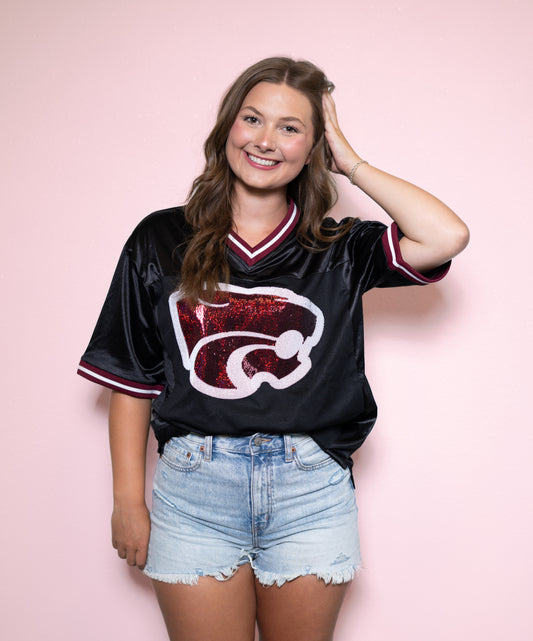 Central Wildcats | Women's Sequin Design Football Jersey (Black)