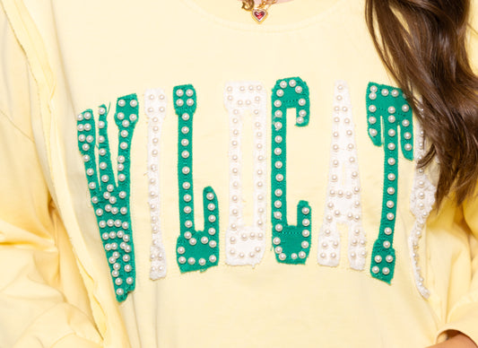 Wildcats | Women's Distressed Embroidery Pullover (Butter Yellow)