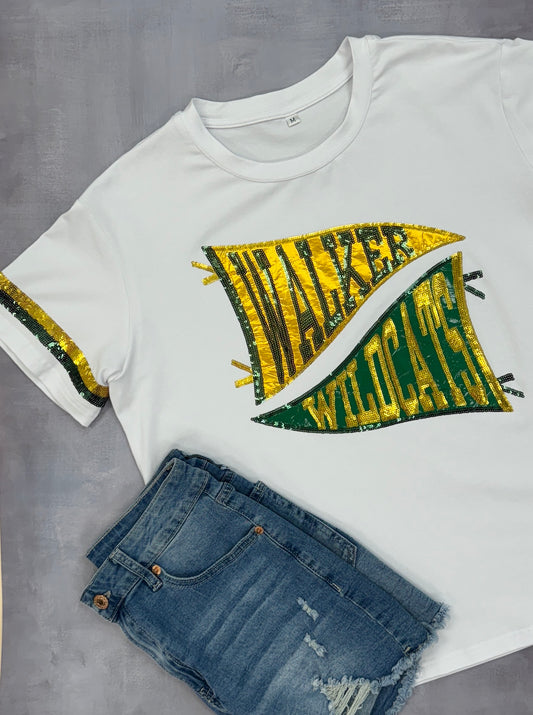 Walker Wildcats Pennant | Women's Sequin Design Tee (White)