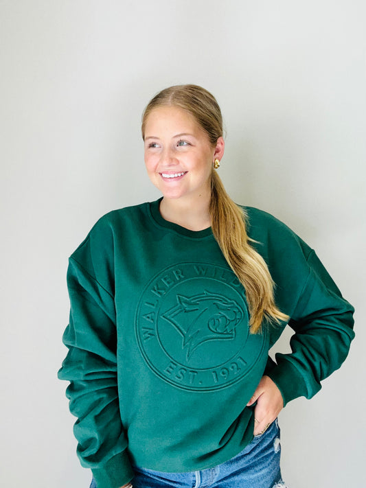 Oversized Embossed Green Sweatshirt | Walker Wildcats
