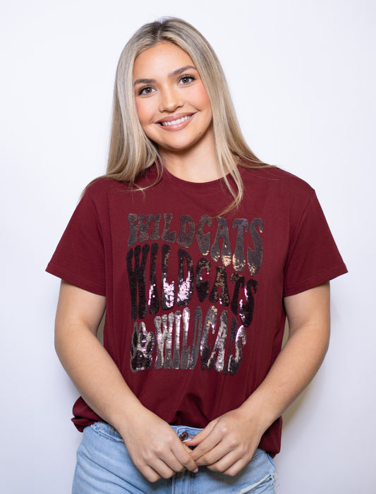 Groovy Wildcats | Women's Sequin Design Tee (Maroon)