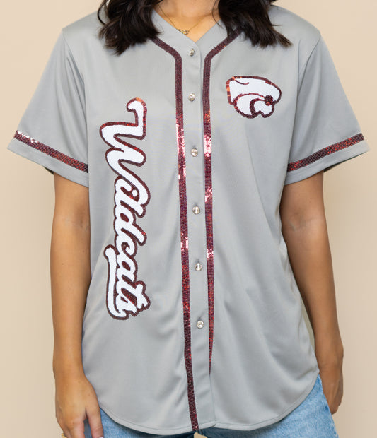 **PRE-ORDER ONLY** Central Wildcats | Women's Sequin Embroidery Baseball Jersey (Grey)
